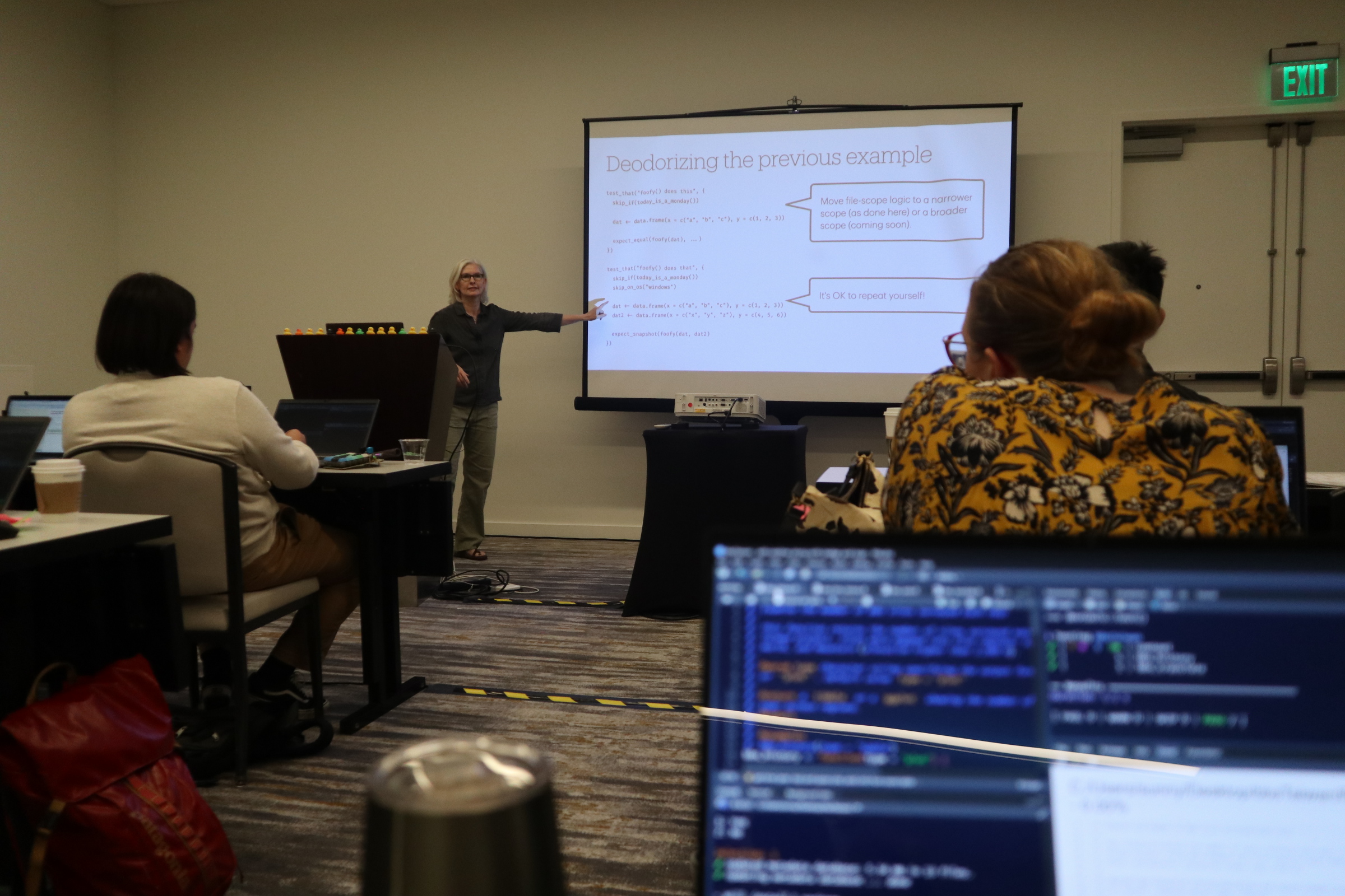 幾個亮點,親自上了 Jenny Bryan 一整天的 Package development workshop,如沐春風,本人超級和藹美麗,還有獲得 debug 小鴨鴨;Posit 繼 RStudio 之後推出新的 IDE 叫做 Positron;開完會頓時成為 hexagon stickers 富有人家。