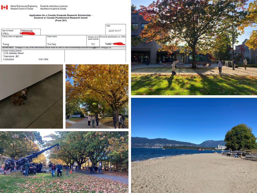 還是滿滿的感激,能在忙碌快速壅擠的生活中,特別是學術圈這樣快速前進的世界裡,在逃離 PG 回到 Vancouver 之後,能有一群願意互相聆聽的夥伴們。身為 Visiting student,我也不知道這樣的地位到底在別人心中是怎麼樣的,Maddy 一開始笑說我是 Adopted student,我也是笑笑地覺得有道理。直到最近 visiting student 的 status expired,連鑰匙、門禁卡等等都要重新申請,才感覺到沒有一個身分地位真的會讓人好不舒服。我算是 lab 的成員之一嗎?